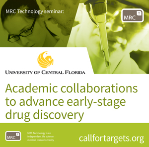 Today, the Office of Technology Transfer is hosting MRC Technology, a life sciences medical research non-profit organization based in the UK, to identify collaboration opportunities. UCF faculty are meeting with members of the MRC business development team one-on-one to discuss their specific research projects in early-stage drug discovery. The goal of these meetings is to accelerate the development of potentially lifesaving drugs.