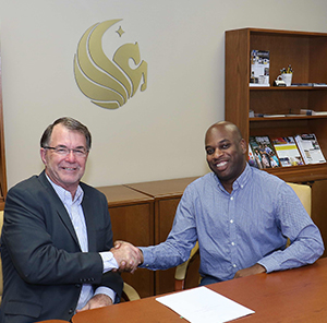 Thomas O’Neal, associate vice president for the Office of Research & Commercialization (left) with Brian Brakeen, Kairos CEO